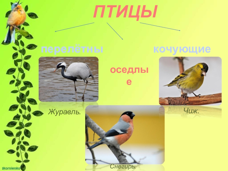 ПТИЦЫперелётныеоседлыекочующиеЖуравль.Чиж.Снегирь.