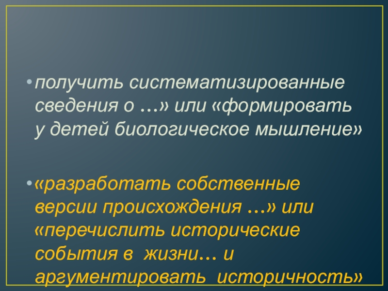 Слайд 16получить систематизированные сведения о …» или «формировать у детей биологическое мышление»