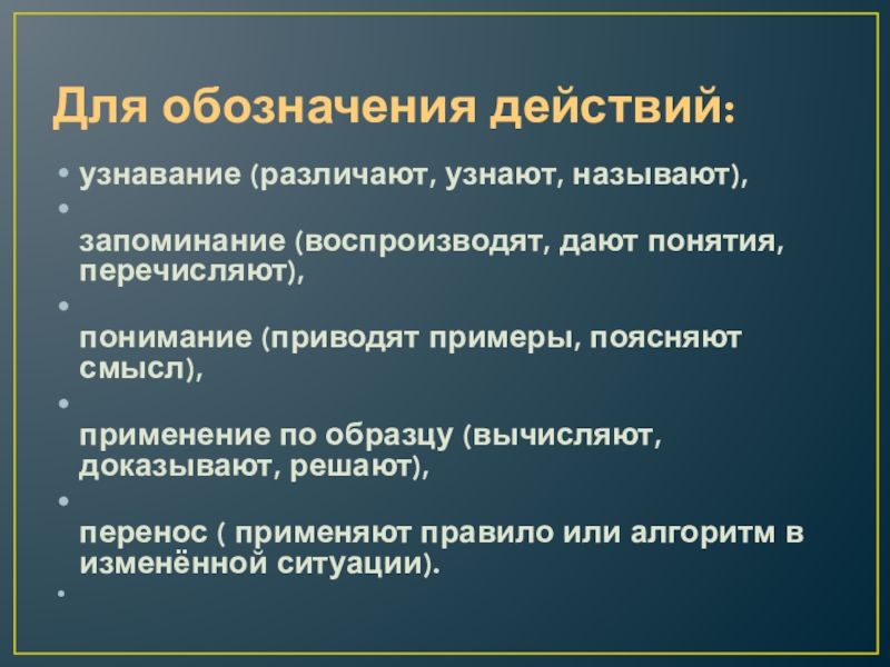 Слайд 19Для обозначения действий: