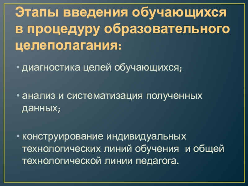Слайд 11Этапы введения обучающихся в процедуру образовательного целеполагания: