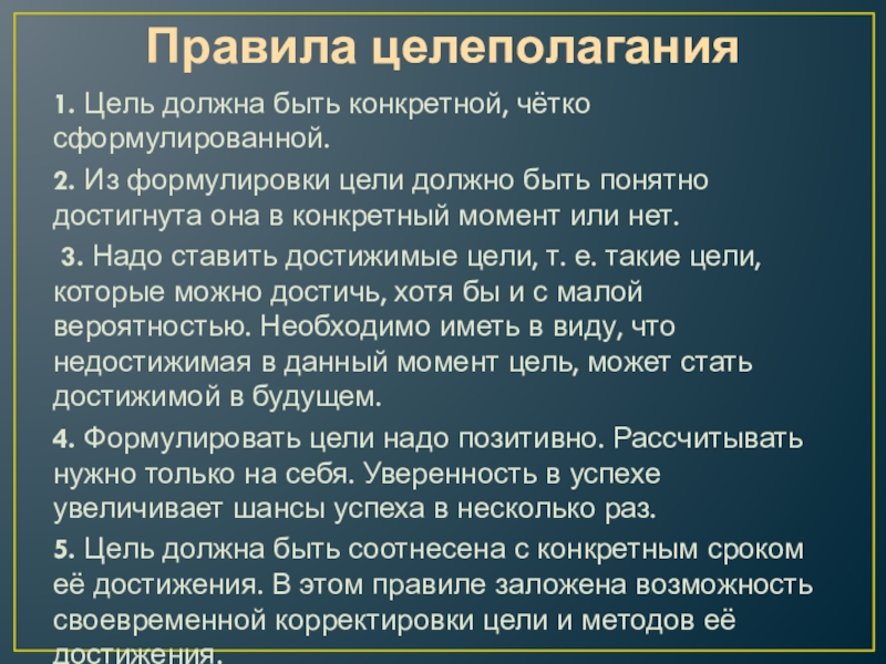 Слайд 26Правила целеполагания