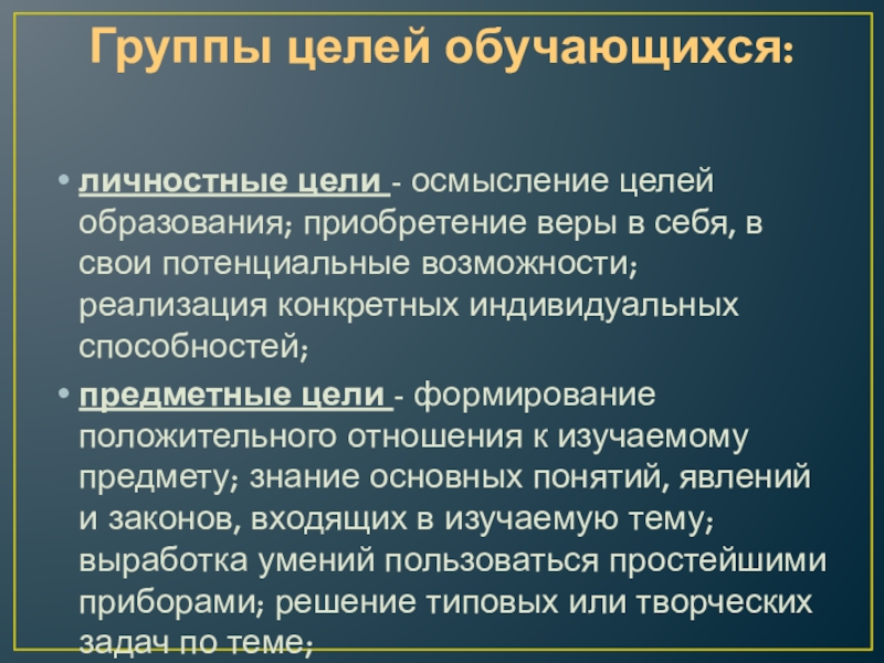 Группы целей обучающихся:
