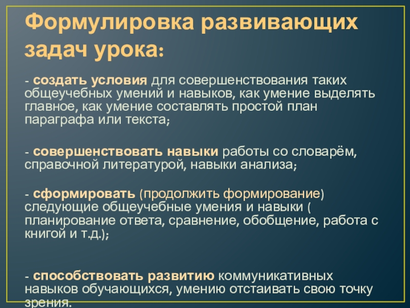 Слайд 21Формулировка развивающих задач урока: