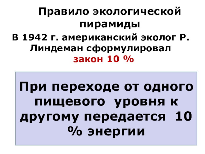 При переходе от одного пищевого уровня к другому передается 10 % энергии