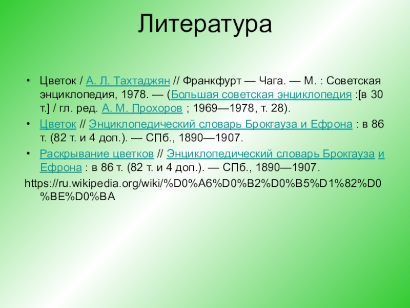 Цветок / А. Л. Тахтаджян // Франкфурт — Чага. — М. : Советская энциклопедия, 1978. — (Большая советская энциклопедия :[в