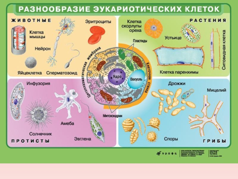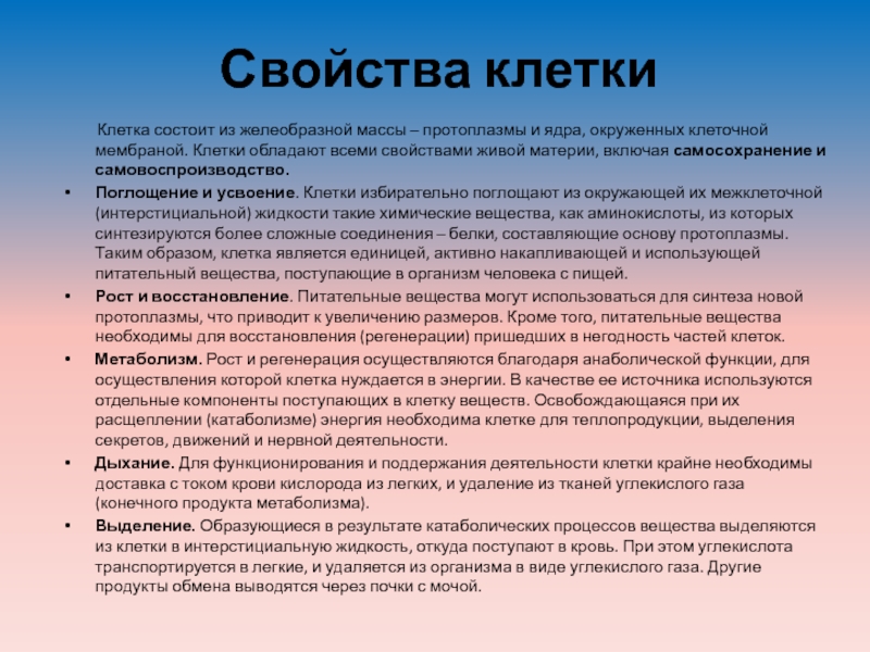 – протоплазмы и ядра, окруженных клеточной мембраной. Клетки обладают всеми свойствами живой материи, включая самосохранение и самовоспроизводство.