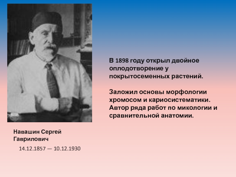 В 1898 году открыл двойное оплодотворение у покрытосеменных