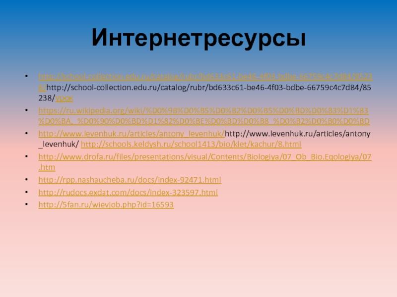 http://www.levenhuk.ru/articles/antony_levenhuk/http://www.levenhuk.ru/articles/antony_levenhuk/ http://schools.keldysh.ru/school1413/bio/klet/kachur/8.html