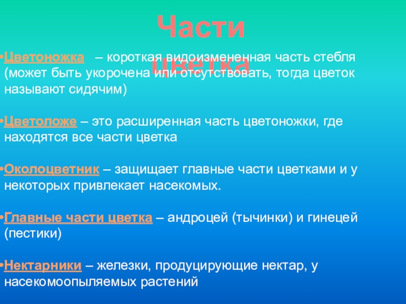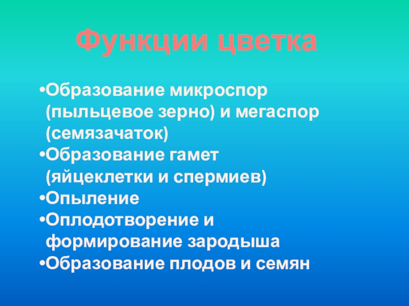 «Строение и функции цветка».