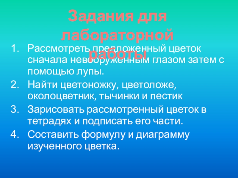зашифрованной форме обозначены все части цветка, а также указаны их
