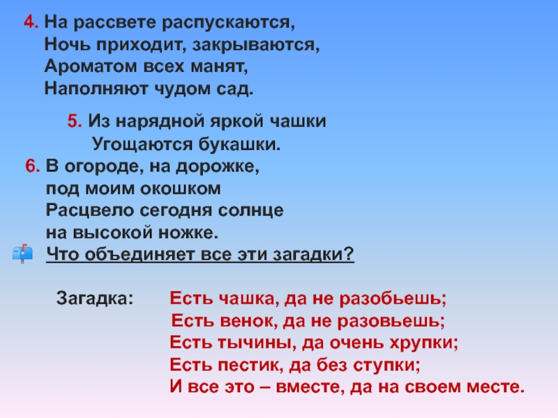 Что объединяет все эти загадки?