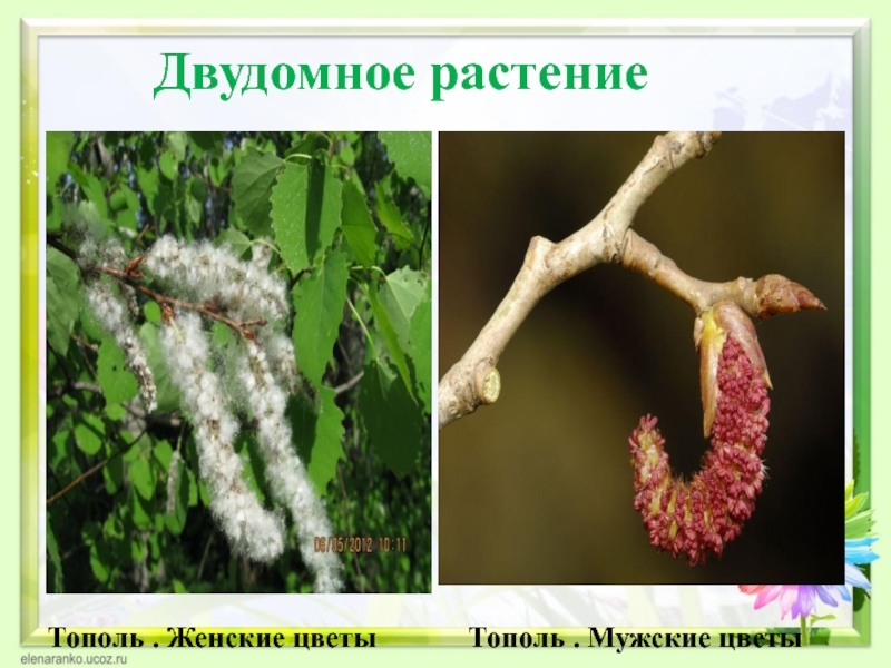 Тополь . Женские цветыТополь . Мужские цветыДвудомное растение