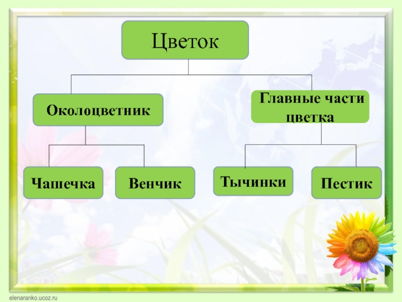 Цветок Околоцветник Главные части цветкаЧашечкаВенчикТычинкиПестик
