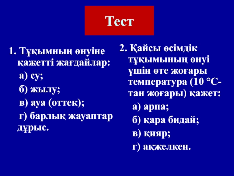 2. Қайсы өсімдік тұқымының өнуі үшін өте жоғары температура (10 °С-тан жоғары) қажет: