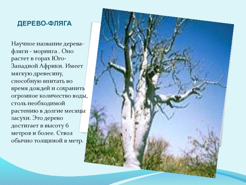 Научное название дерева-фляги - моринга . Оно растет в горах Юго-Западной