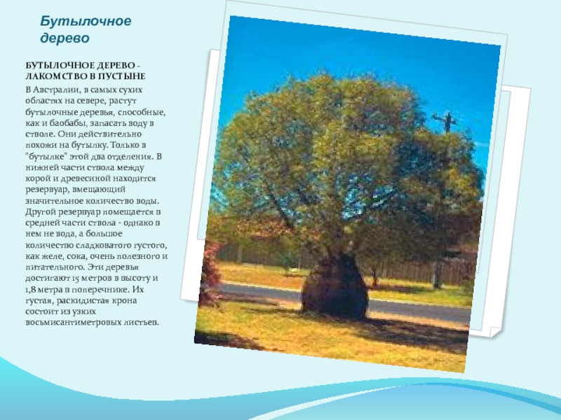 БУТЫЛОЧНОЕ ДЕРЕВО - ЛАКОМСТВО В ПУСТЫНЕ