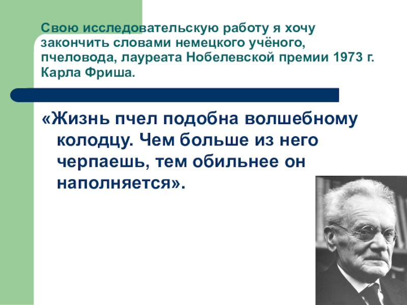 «Жизнь пчел подобна волшебному колодцу. Чем больше из него черпаешь, тем обильнее он наполняется».