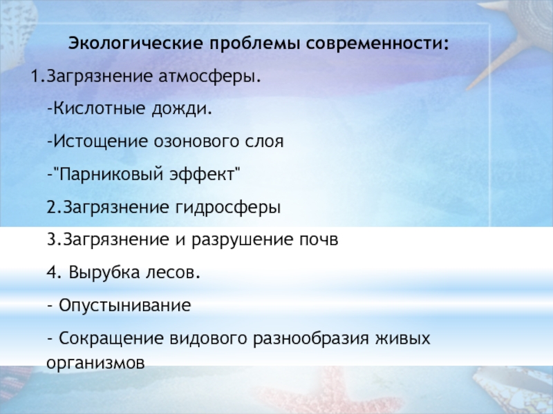 Тема урока: «Экологические проблемы современности и пути их решения».