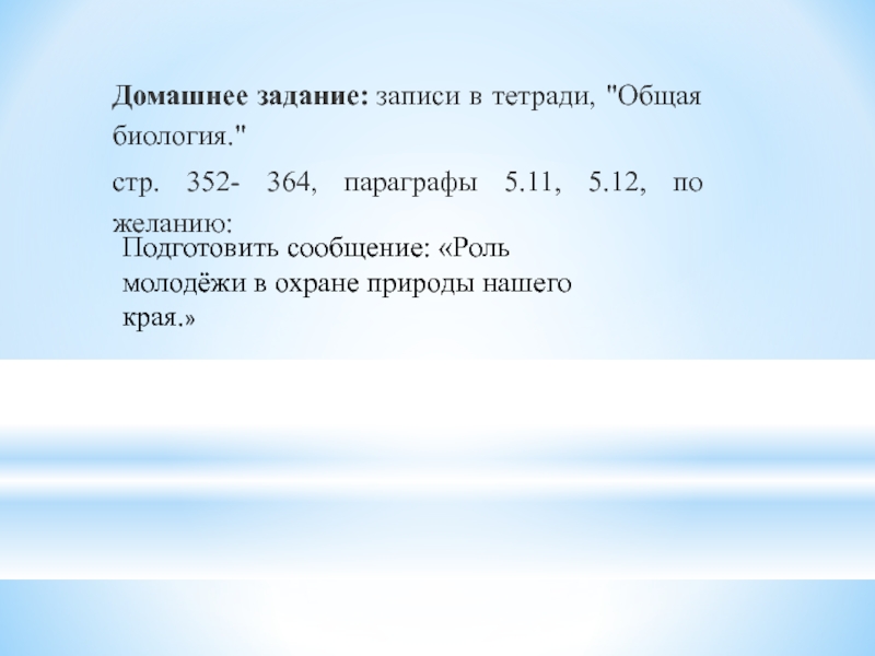 Подготовить сообщение: «Роль молодёжи в охране природы нашего края.»