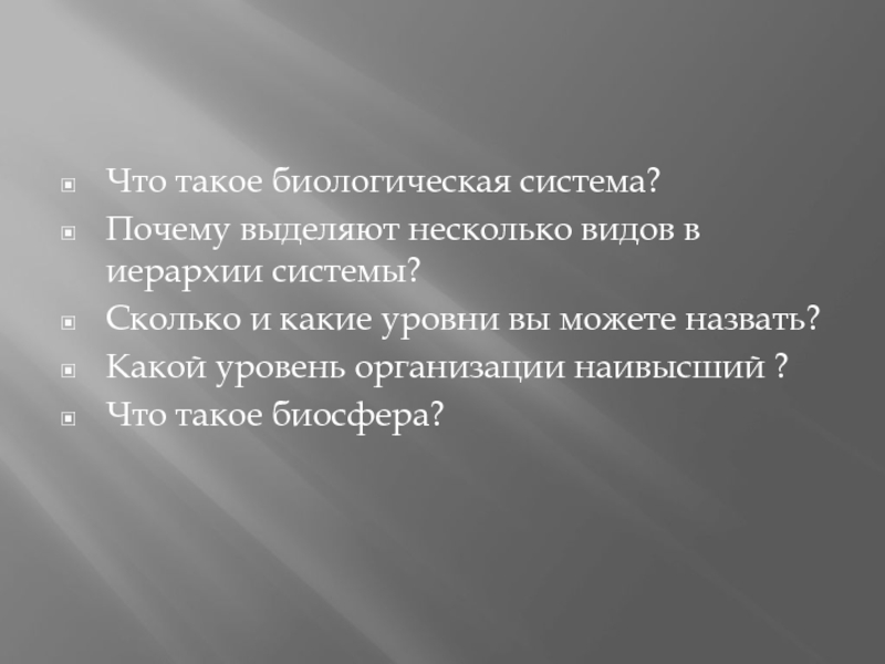 Что такое биологическая система?Почему выделяют несколько видов в иерархии системы?Сколько и какие уровни вы можете назвать? Какой