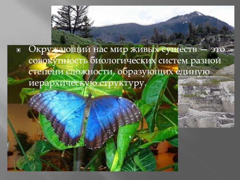 Слайд 2Окружающий нас мир живых существ — это совокупность биологических систем разной