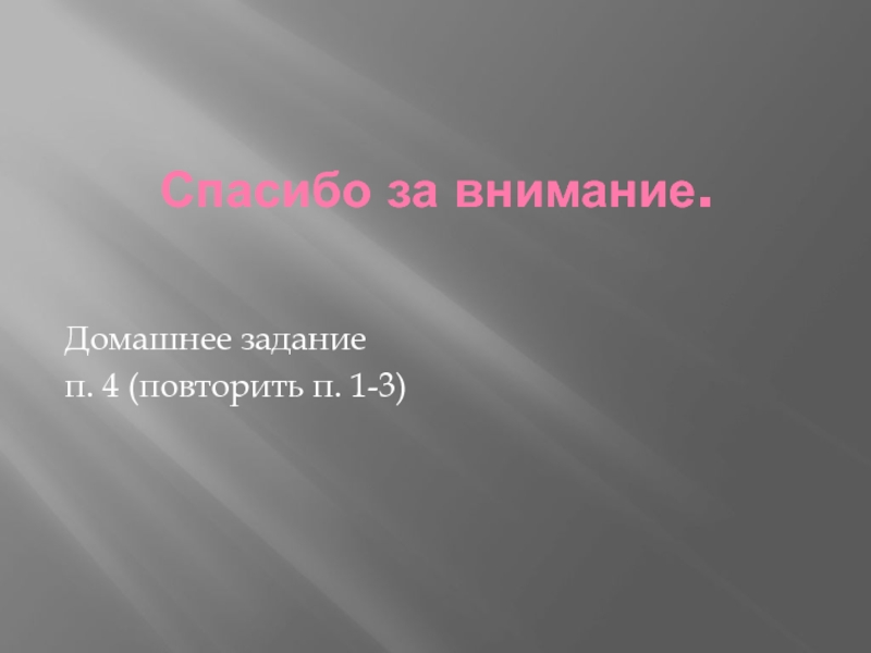 Спасибо за внимание.Домашнее заданиеп. 4 (повторить п. 1-3)