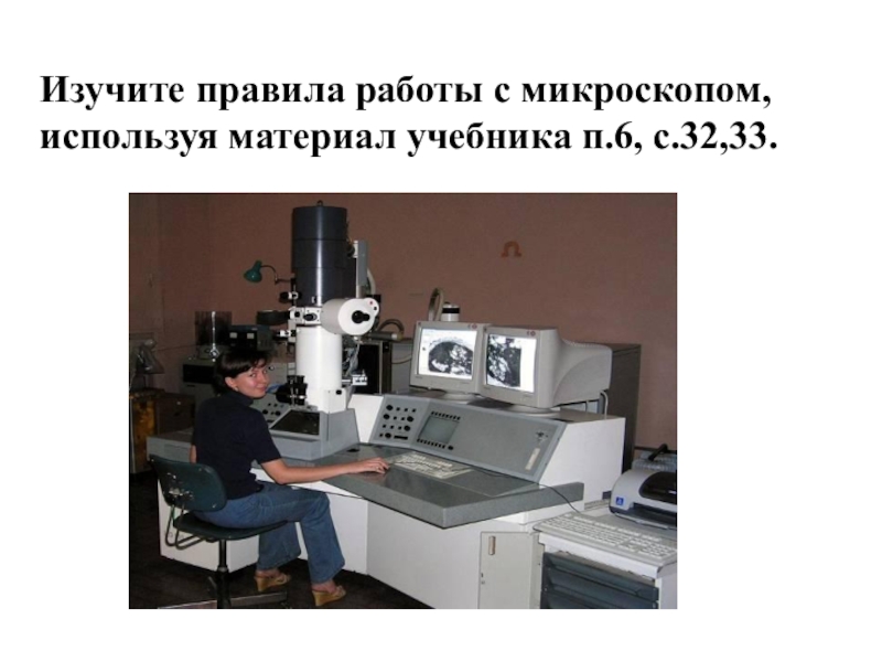 Изучите правила работы с микроскопом, используя материал учебника п.6, с.32,33.