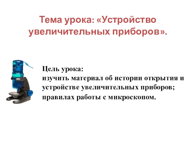 и устройстве увеличительных приборов; правилах работы с микроскопом.