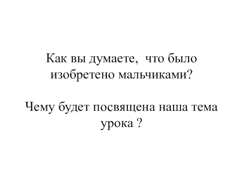 Как вы думаете, что было изобретено мальчиками?Чему будет посвящена наша тема урока ?