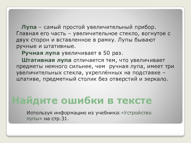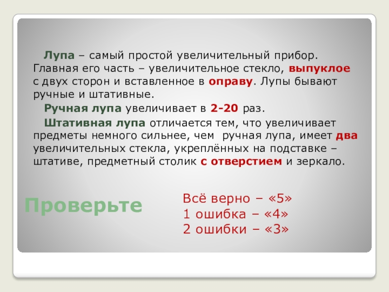 Используя информацию из учебника:«Устройство лупы» на стр.31.