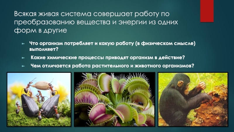 Что организм потребляет и какую работу (в физическом смысле) выполняет?