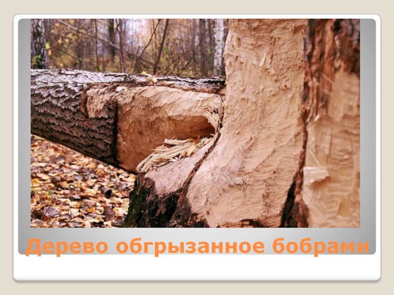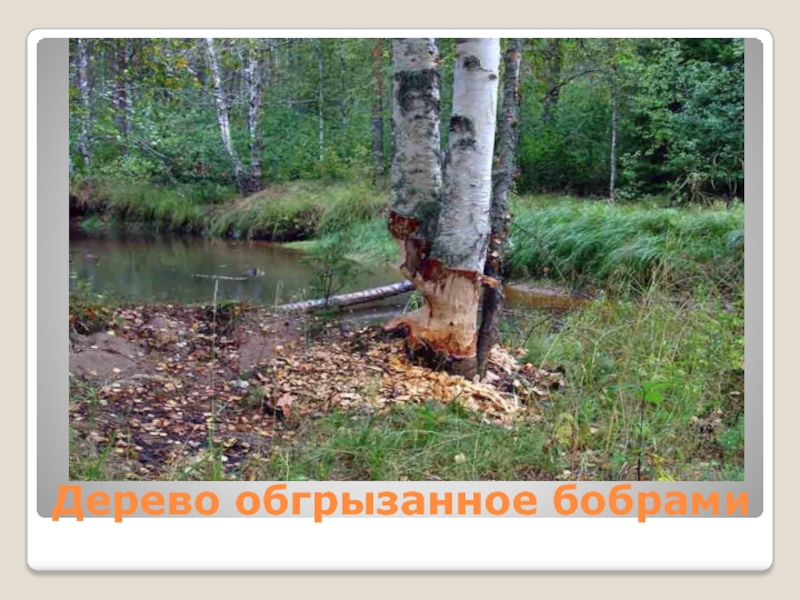 Слайд 5Дерево обгрызанное бобрами