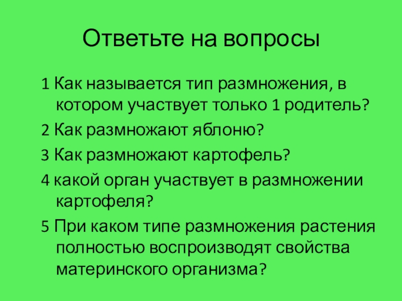 5 При каком типе размножения растения полностью воспроизводят свойства материнского организма?