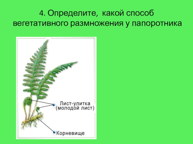 Слайд 304. Определите, какой способ вегетативного размножения у папоротника