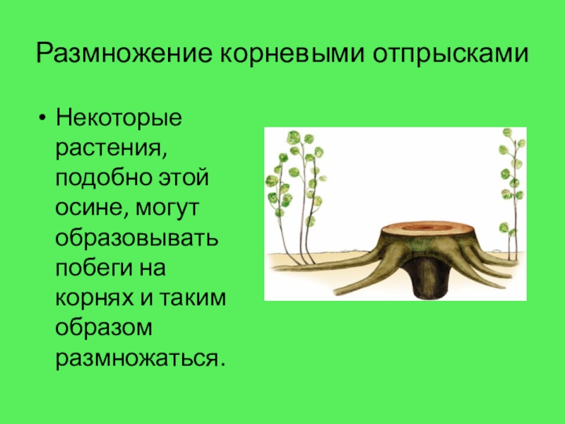 Некоторые растения размножаются корневыми отпрысками. Например: некоторые из