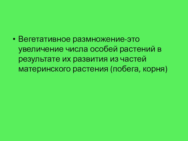 Слайд 4Вегетативное размножение-это увеличение числа особей растений в результате их развития из
