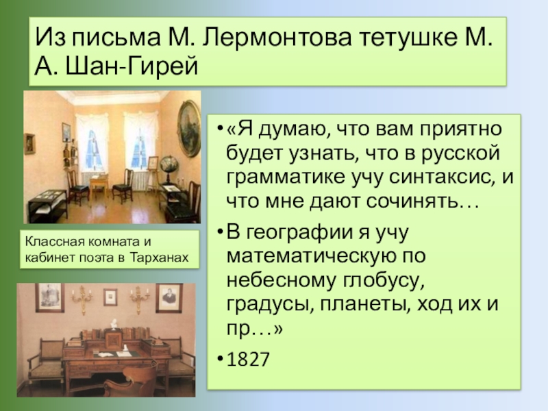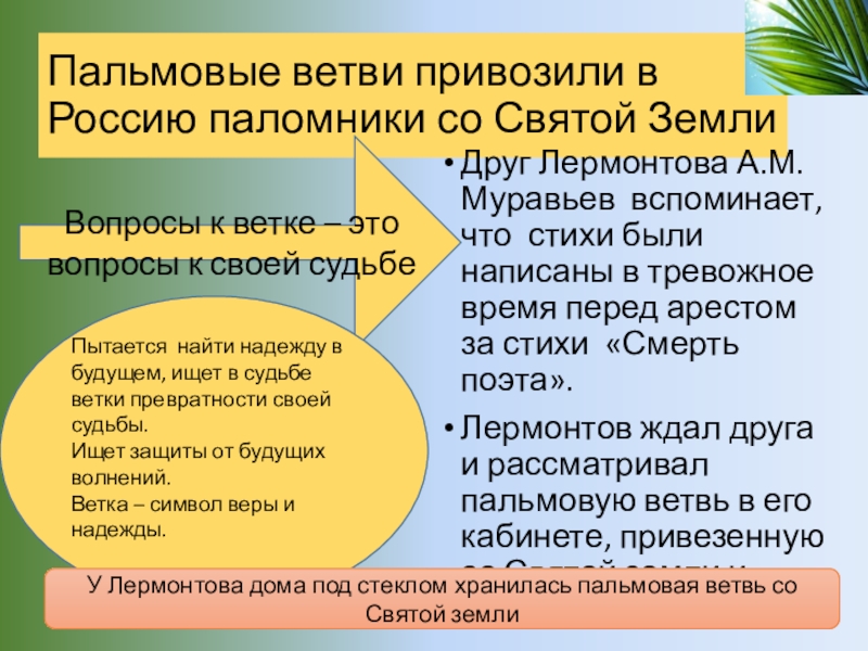 У Лермонтова дома под стеклом хранилась пальмовая ветвь со Святой земли