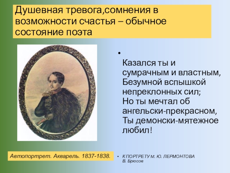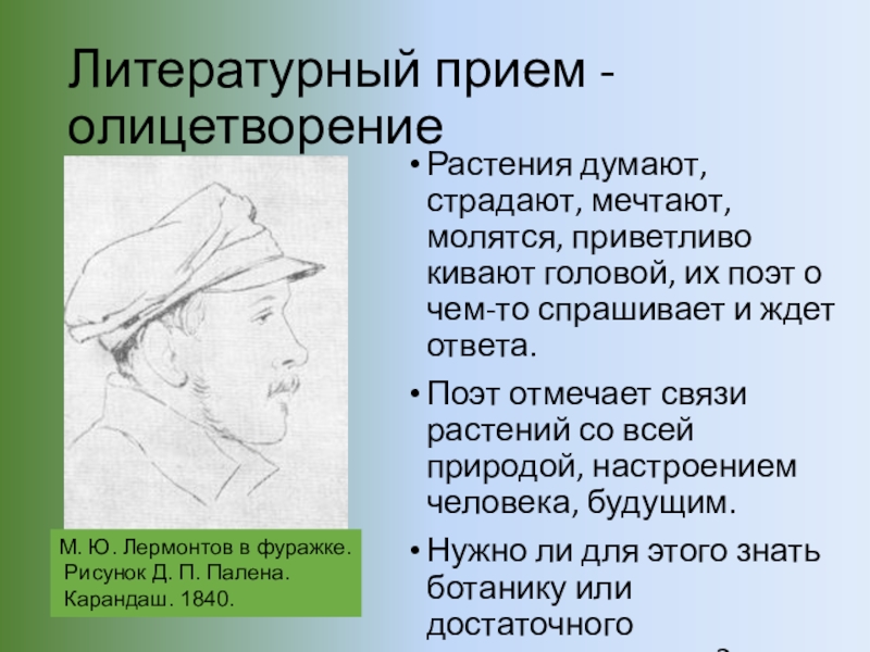М. Ю. Лермонтов в фуражке. Рисунок Д. П. Палена.