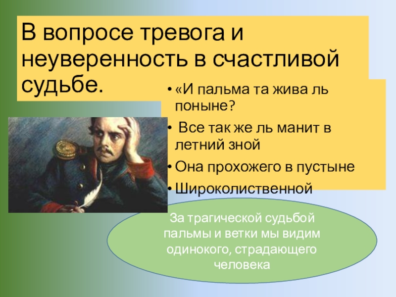 За трагической судьбой пальмы и ветки мы видим одинокого, страдающего человека