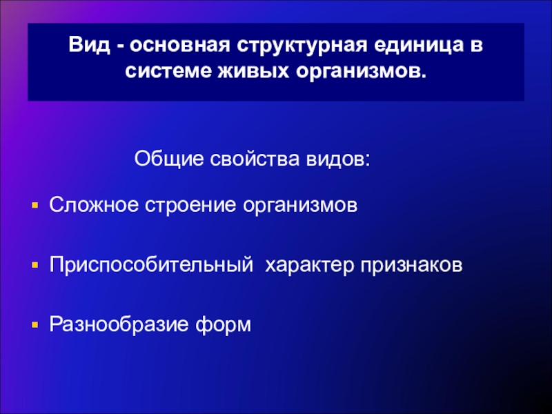 Общие свойства видов: