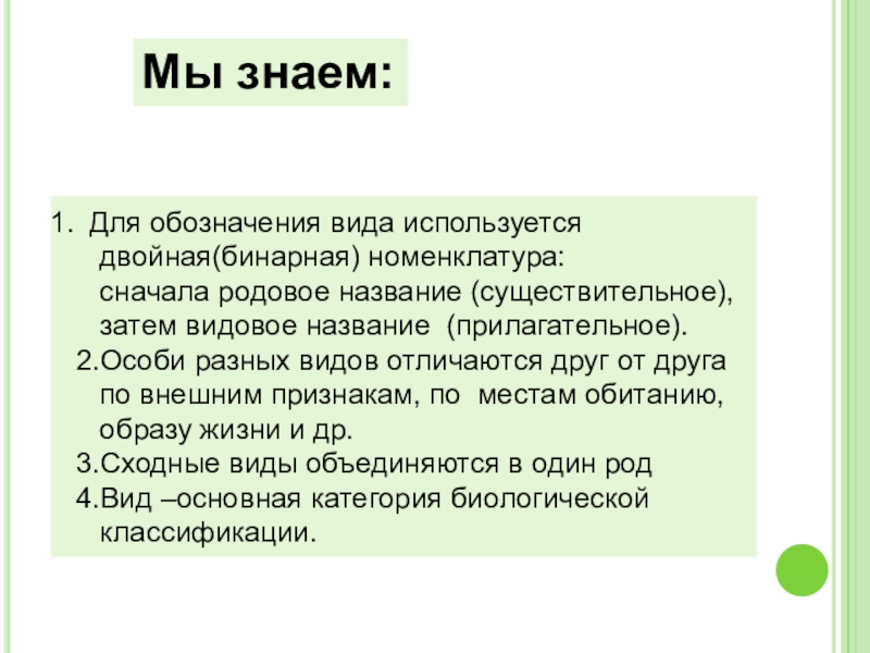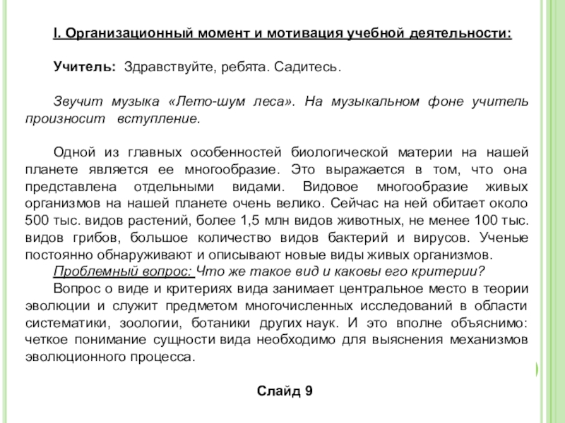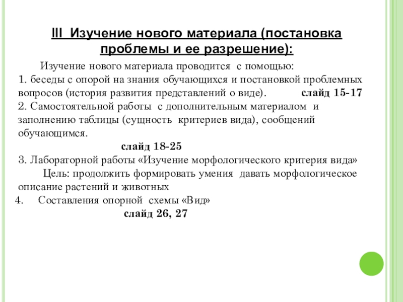 1. беседы с опорой на знания обучающихся и постановкой проблемных вопросов (история развития представлений о виде). слайд 15-17