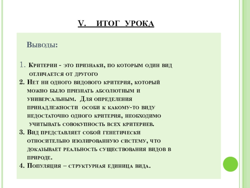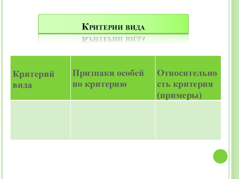 2. Самостоятельной работы с дополнительным материалом и заполнению таблицы (сущность критериев вида), сообщений обучающимся.