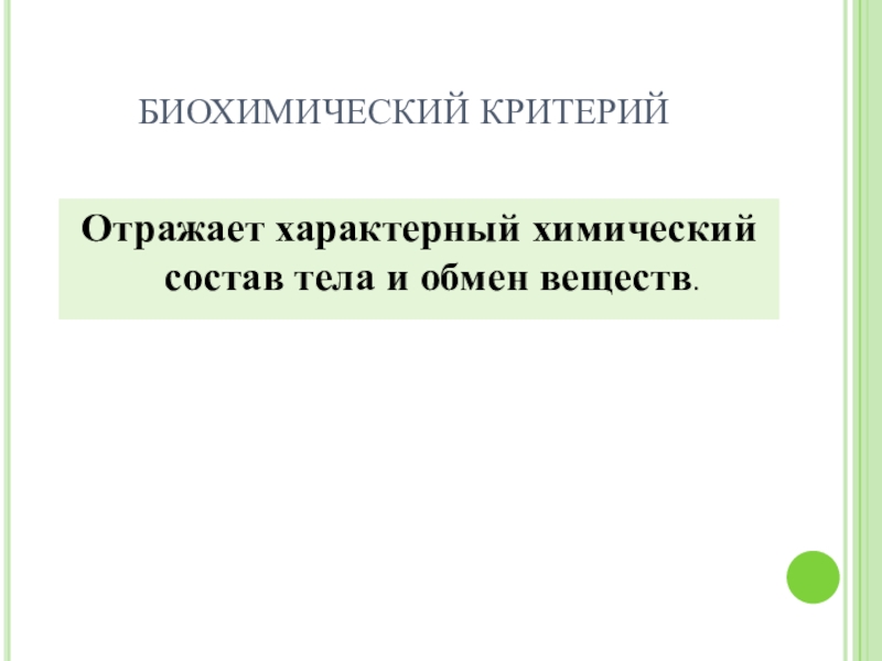 Слайд 22БИОХИМИЧЕСКИЙ КРИТЕРИЙ