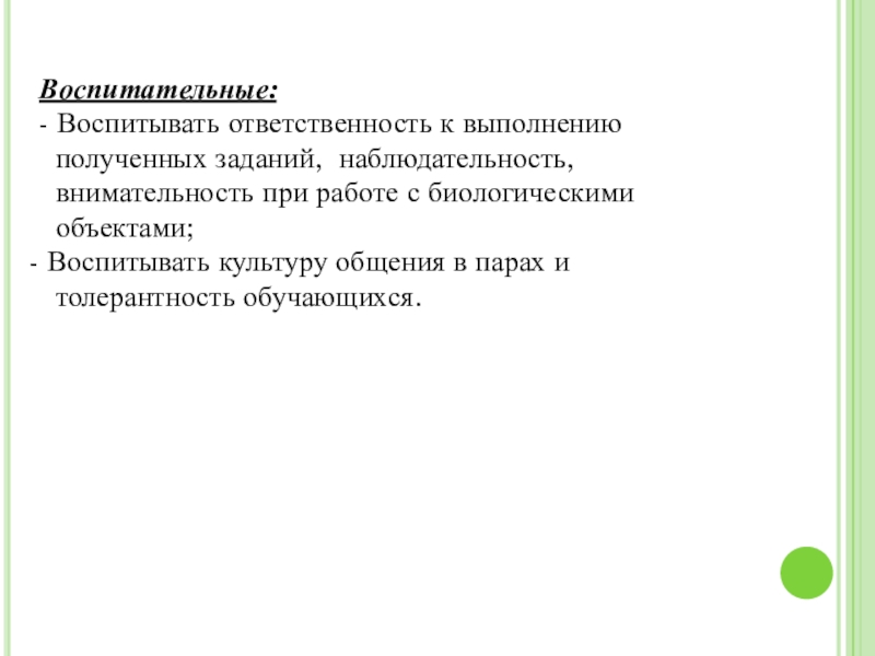 Цель: продолжить формировать умения давать морфологическое описание растений и животных