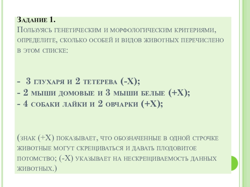 Пользуясь генетическим и морфологическим критериями, определите, сколько особей и видов