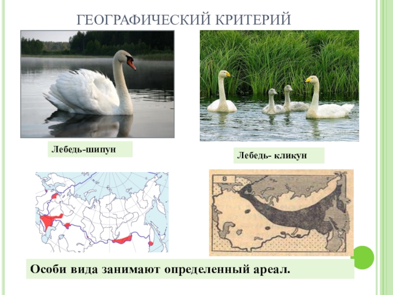 Для видов обитающих в Байкале, ареал ограничивается этим озером, - это пример географического критерия;