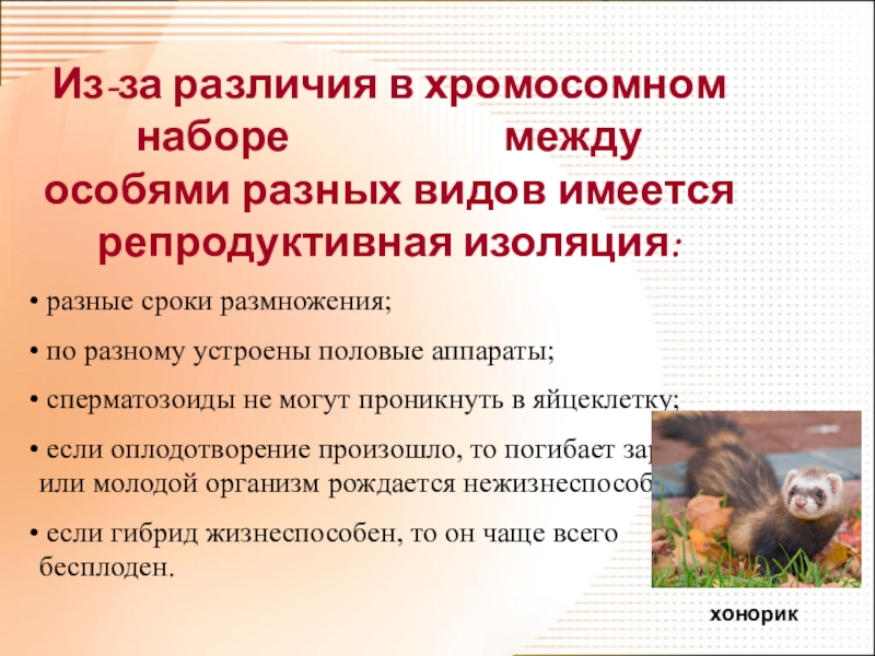 Особенно важны отличия в физиологии размножения: в строении полового аппарата, в сроках размножения.