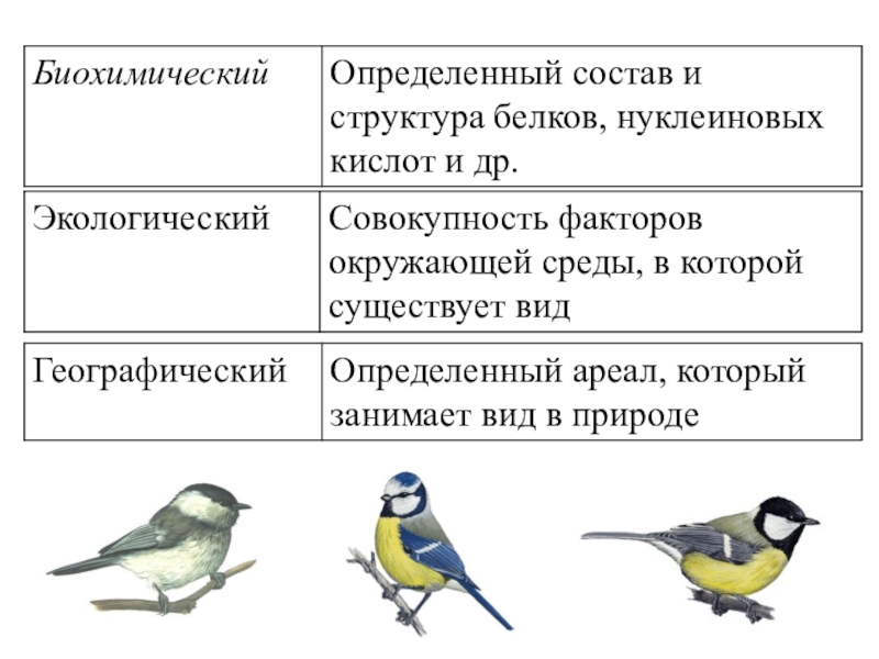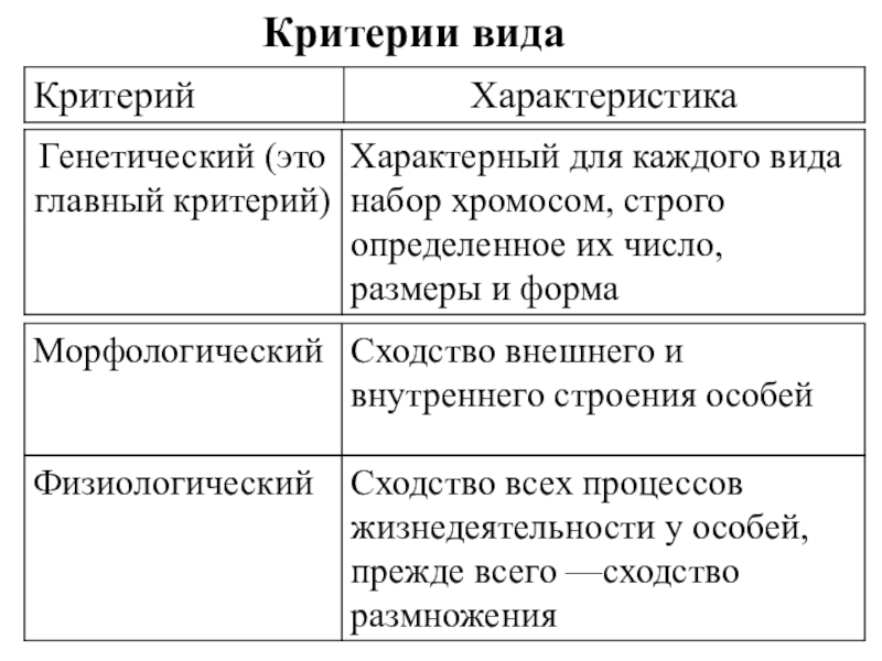 Критерии вида – это характерные для вида признаки и свойства называют
