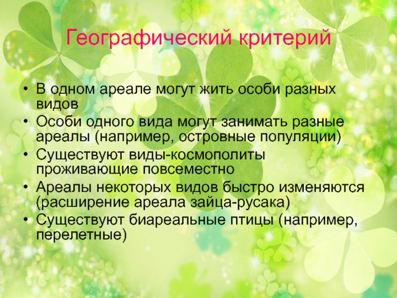 Географическая популяция — это группа особей одного вида, населяющих территории с однородными условиями существования.