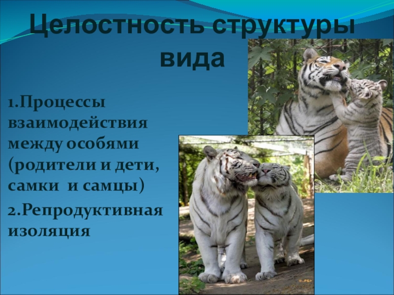 Целостность структуры вида1.Процессы взаимодействия между особями(родители и дети, самки и самцы)2.Репродуктивная изоляция